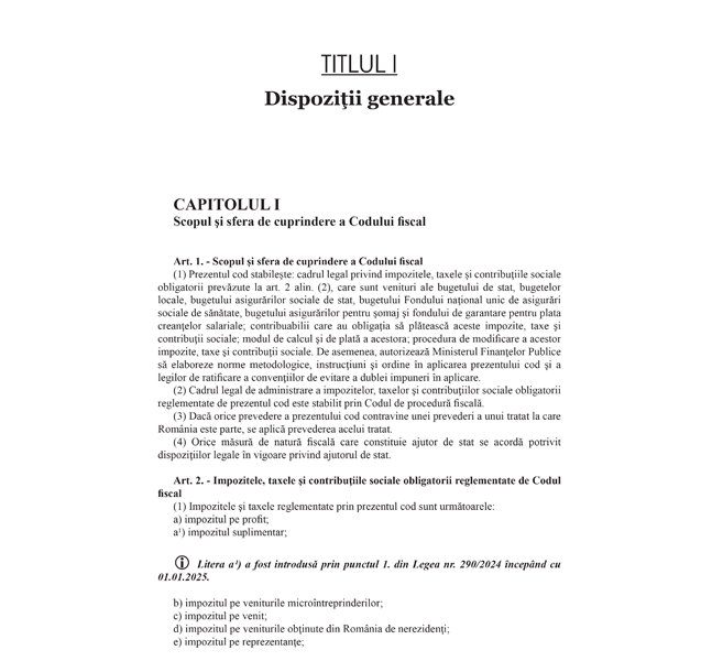 CLICK AICI pentru a vizualiza cuprinsul pentru Codul Fiscal actualizat 2025.