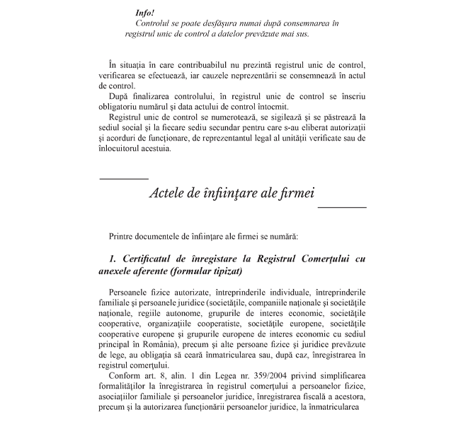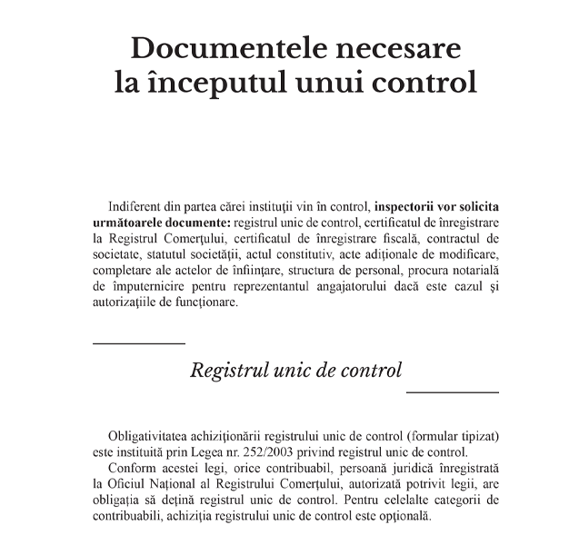 Cuprins „Documente obligatorii în cazul unui control”