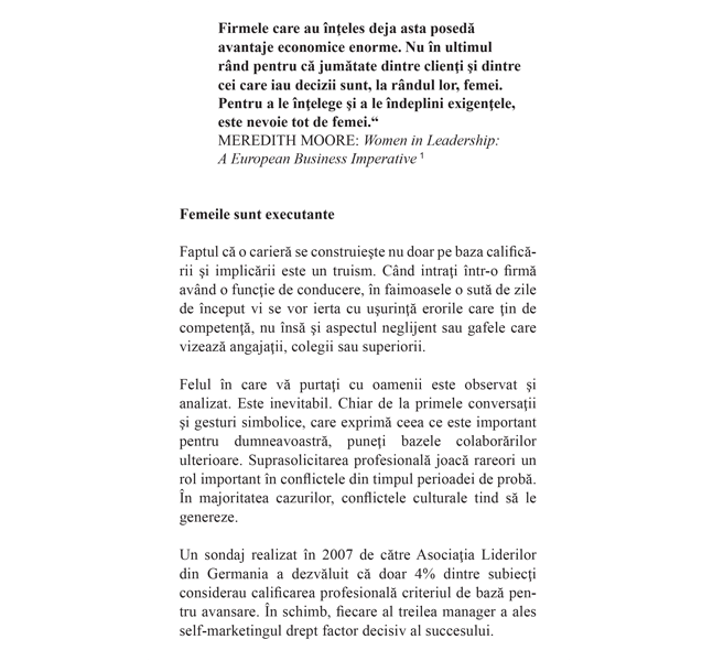Dacă sunteţi o femeie care a decis că este timpul să-şi impulsioneze cariera oferiţi-vă această carte, dar la fel de bine o puteţi oferi cadou colegei de birou, celei mai bune prietene, mamei, sau fiicei dvs.